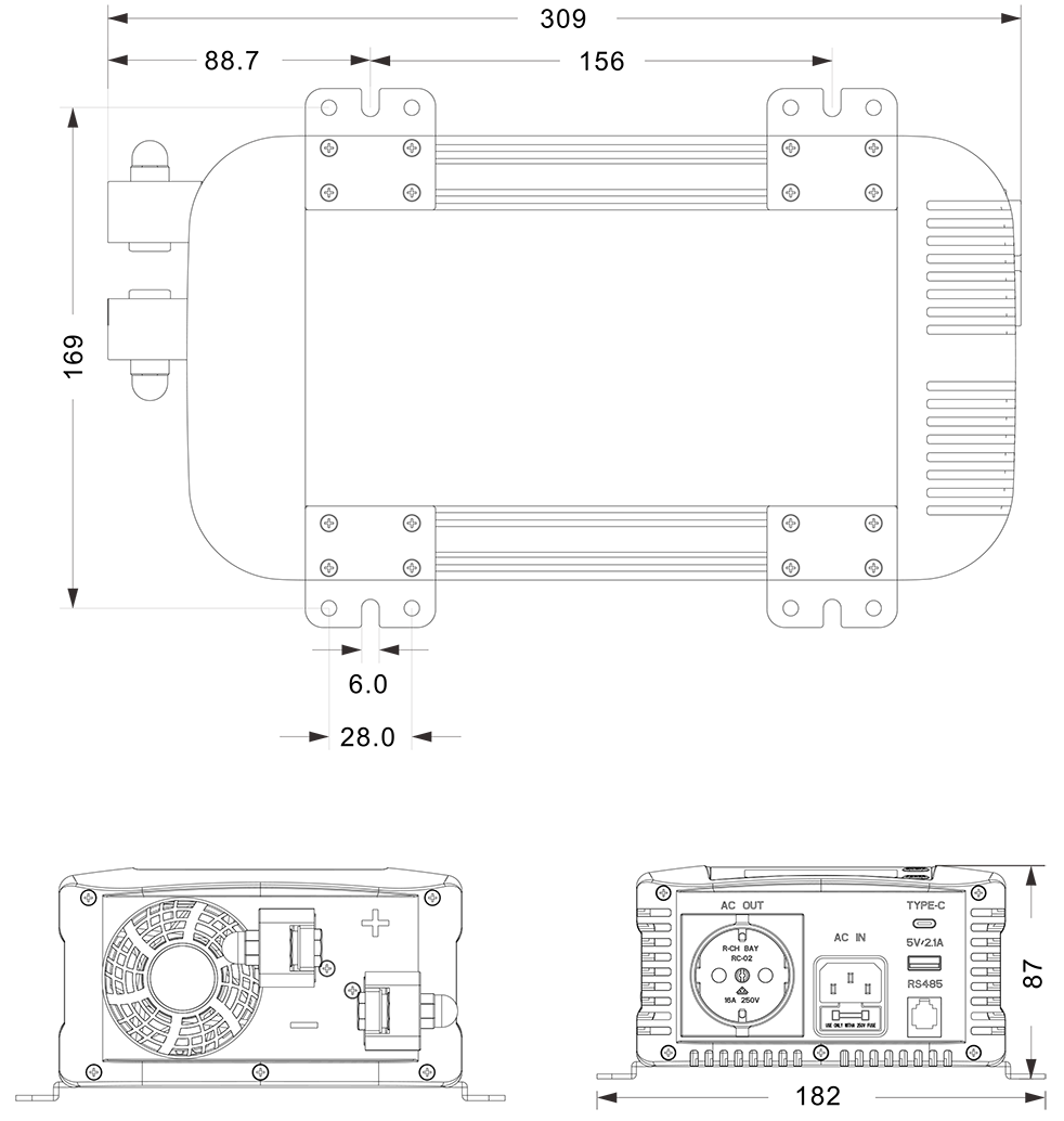 यांत्रिक चित्र:(309x182x87 मिमी)