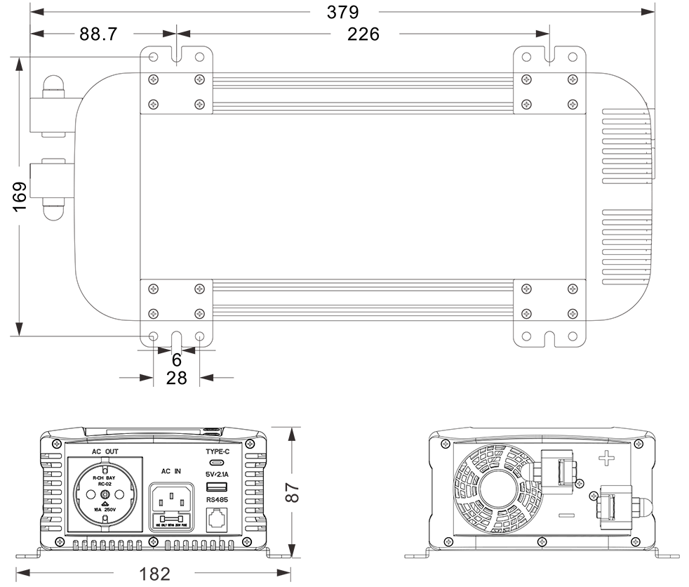 अन्य आयाम (डब्ल्यू×एच×डी) 379×182×87मिमी