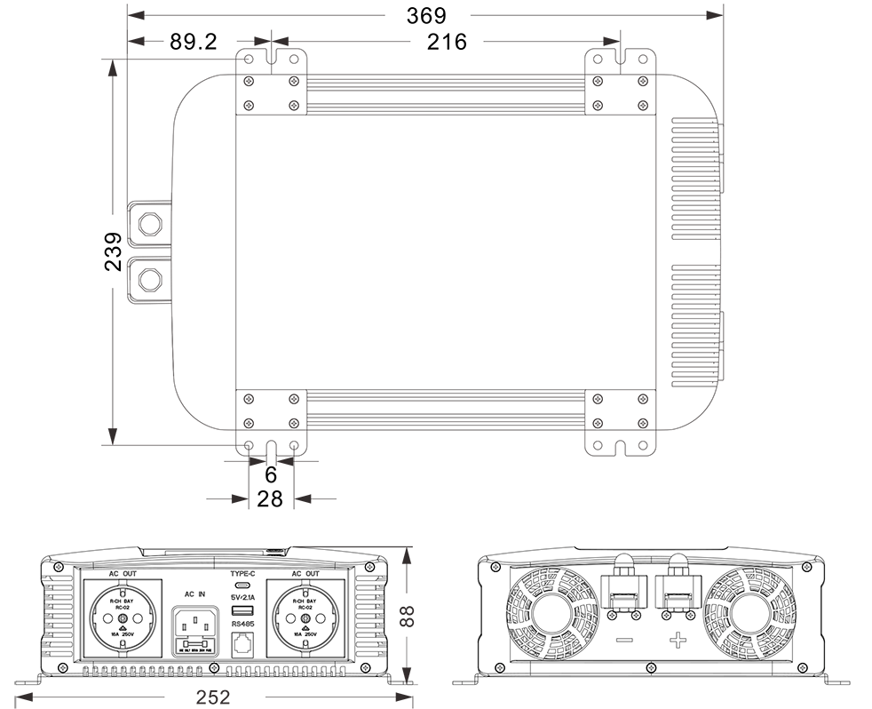 अन्य आयाम (डब्ल्यू×एच×डी) 369×252×88मिमी