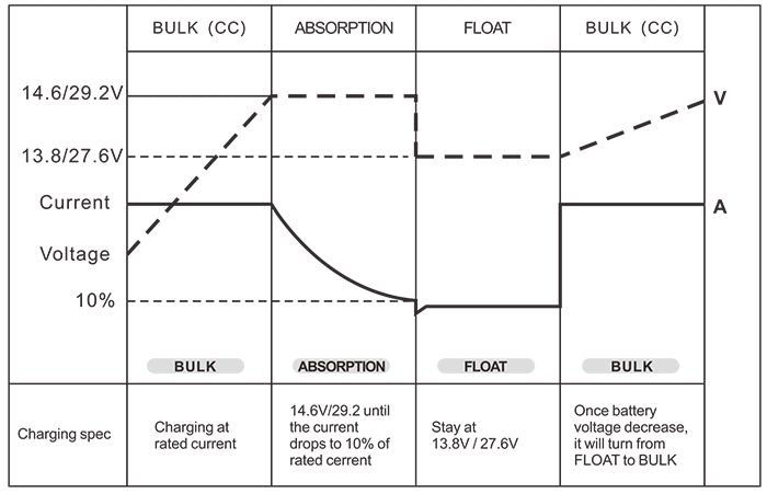 बैटरी नियंत्रण (3-स्टेज बैटरी चार्जर) थोक/अवशोषण/फ्लोट