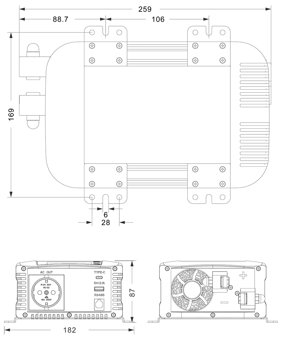 यांत्रिक चित्र:(259x182x87मिमी)