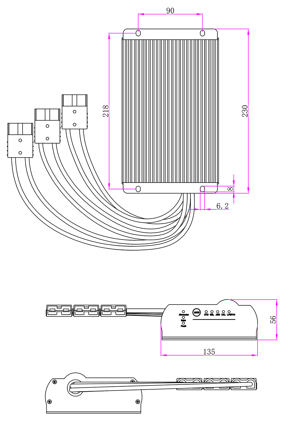 यांत्रिक चित्र:(230x135x56 मिमी)