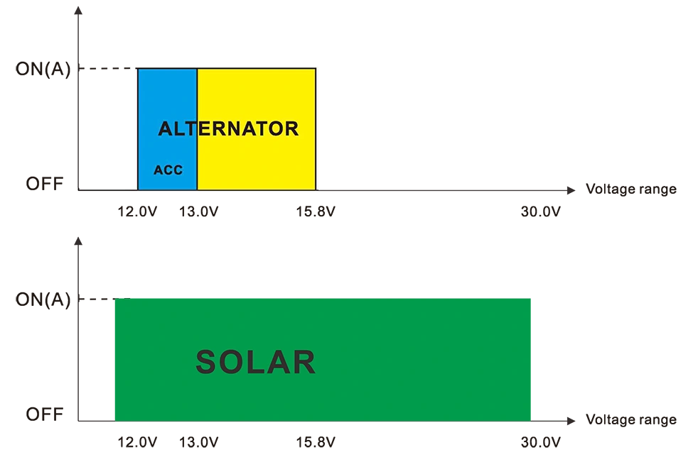 ●यूनिवर्सल एसी इनपुट 12.0V-30.0V士0.2V सोलर के लिए/12.0V-15.BVH0.2V कार के लिए